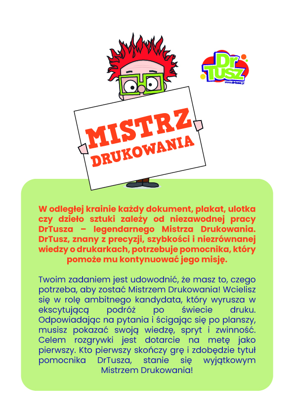 Mistrz Drukowania – gra planszowa do samodzielnego wydruku! Szukasz pomysłu na świetną zabawę? „Mistrz Drukowania” to pełna emocji gra planszowa, którą wydrukujesz w domu! W zestawie znajdziesz: planszę, karty z pytaniami, żetony, pionki, kostkę i prostą instrukcję – wszystko gotowe do druku. ✅ Dla dzieci i dorosłych ✅ Idealna na wieczór z rodziną lub przyjaciółmi ✅ Rozwija wiedzę, refleks i gwarantuje mnóstwo śmiechu! ?️ Wydrukuj. Zagraj. Zostań Mistrzem Drukowania!