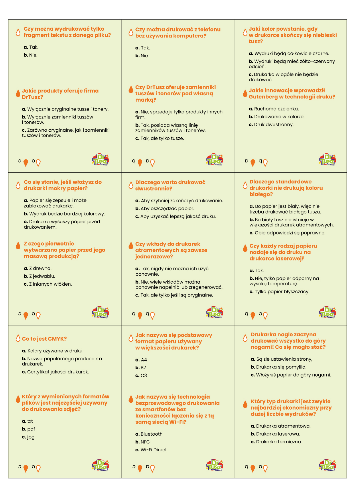 Mistrz Drukowania – gra planszowa do samodzielnego wydruku! Szukasz pomysłu na świetną zabawę? „Mistrz Drukowania” to pełna emocji gra planszowa, którą wydrukujesz w domu! Przygotowaliśmy pytania w dwóch wariantach trudności - sprawdźcie wspólnie swoją wiedzę. Wydrukuj. Zagraj. Zostań Mistrzem Drukowania!